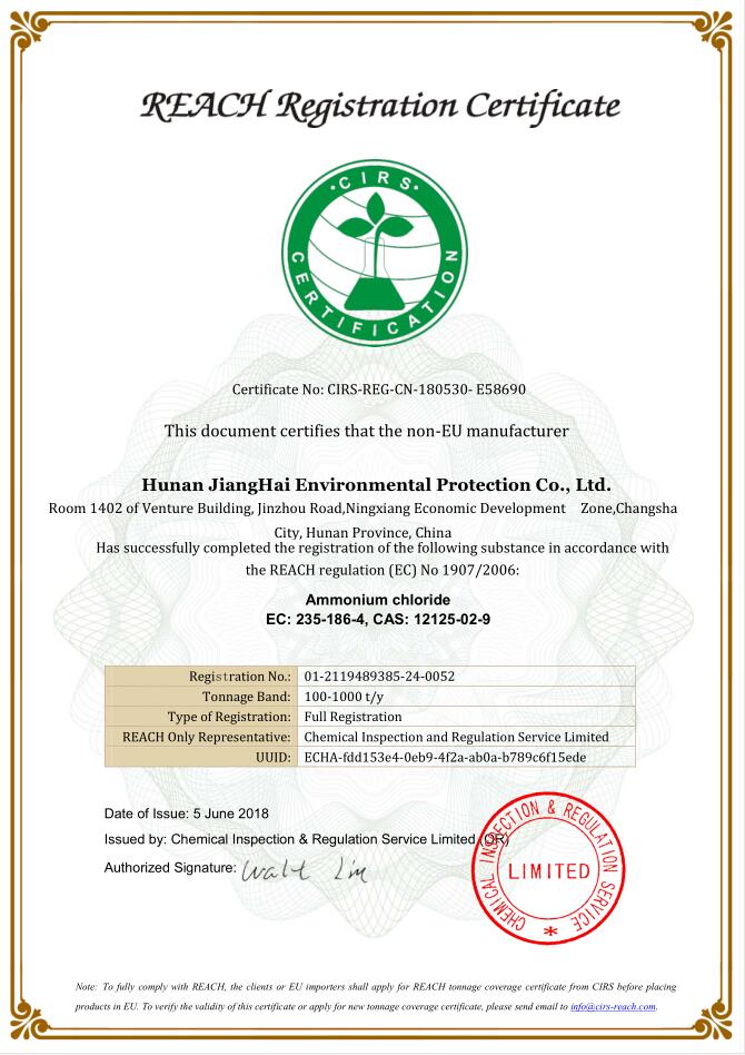 作為湖南的高新技術(shù)企業(yè),公司通過國家ISO14000:2004環(huán)境體系、ISO9001:2015質(zhì)量管理體系、ISO22000食品質(zhì)量管理體系、美國FDA、Kosher、HALAL一系列質(zhì)量認(rèn)證,2021年獲得了省專精特新“小巨人”企業(yè)稱號,并通過了歐盟Reach、SGS等第三方認(rèn)證。我們不斷的提升純度,開拓行業(yè),針對不同客戶,定制化生產(chǎn)不同的產(chǎn)品,在飼料級、電池級、低鉀鈉型、全溶解型、精制型等特種氯化銨,AR級氯化銨、食品添加劑級氯化銨均具有行業(yè)認(rèn)證。以始終堅持科技創(chuàng)新為本,不斷開拓,堅持進(jìn)取,為成為具有百年傳承的氯化銨企業(yè)而不懈努力!